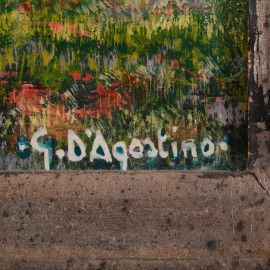 Casolare vicino al mare, XX secolo, olio su compensato, cm 8x15, firmato in basso a destra, entro cornice