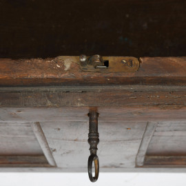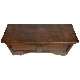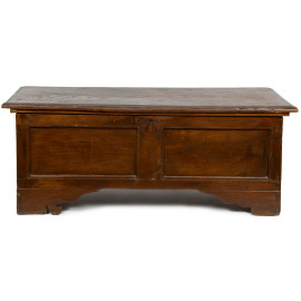 Cassapanca in noce modanato con piedi a mensola, XX secolo, cm 52x131x46,5, (segni di usura)
