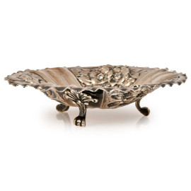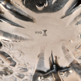 Centrino in argento 800/000 di forma circolare cesellato a motivi floreali poggiante su tre piedini, cm 3x13, peso gr 110