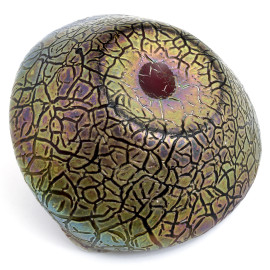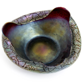 Centrotavola in vetro di colore opalescente con effetto crettato e orlo a fazzoletto, XX secolo, cm 12x26x26, (lievi difetti)
