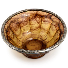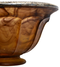 Centrotavola in vetro fumè con orlo in argento, XX secolo, cm 11x23
