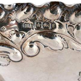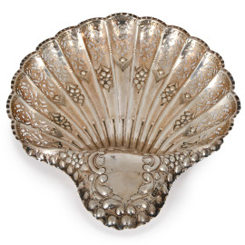 Conchiglia centrotavola in argento inglese, cm 5,5x28x23, peso gr 300