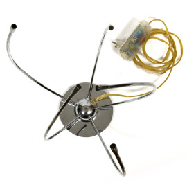 Coppia di lampade da tavolo in acciaio cromato prod. Sforzin Illuminazione, altezza cm 42, (segni di usura, da revisionare)