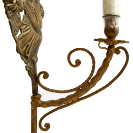 Coppia di palme in lamina di metallo montate a lampada su base in marmo verde, XX secolo, altezza cm 61 (difetti, da revisionare)