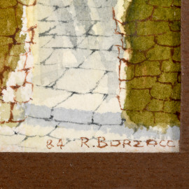 Dalla finestra, XX secolo, acquerello su carta, cm 19x9, entro cornice
