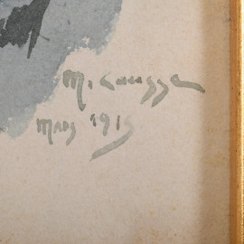 Doppio ritratto maschile, acquerello su carta, firmati e datati rispettivamente aprile e marzo 1913, misure singole cm 219x14,5 entro unica cornice, (lieve foxing)