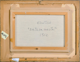 Enotrio Pugliese (1920-1989), Natura morta, olio su tela, cm 35,5x50 entro cornice, firmato in basso e firmato, titolato e datato al retro 1962