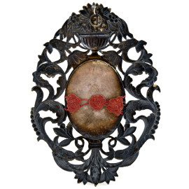 Ex voto in argento finemente cesellato e sbalzato a racemi, XIX-XX secolo, cm 16x11, peso lordo gr 55, (segni di usura del tempo)