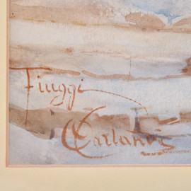 Fiuggi, XIX-XX secolo, acquerello su carta, cm 63,5x47 compreso passepartout, firmato e iscritto "Fiuggi" in basso a sinistra entro cornice, (lievi ondulazioni della carta)