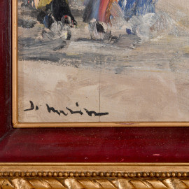 Francesco di Marino, Napoli Piazza Trento, olio su compensato, cm 25x35, firmato in basso a sinistra, entro cornice (supporto lievemente imbarcato e fessurato al centro)