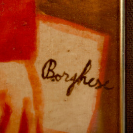 Franz Borghese (1941-2005), "Ieri, Poi", olio su tela, cm 40,5x50, firmato in basso a destra, entro cornice