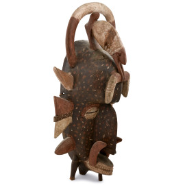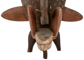 Grande maschera africana in legno dipinto e scolpito, cm 73x41x20, (segni di usura)