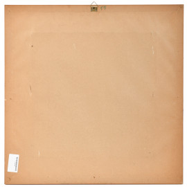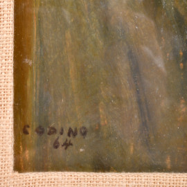 Interno di bottega, XX secolo, olio su tavoletta, cm 37,5x37,5, firmato e datato "Codino 64" in basso, entro cornice
