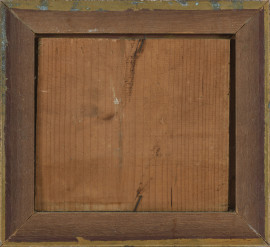 La raccolta del fieno, XX secolo, olio su compensato, cm 17,5x19,5, entro cornice, (difetti)