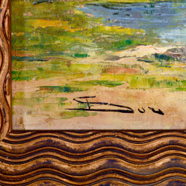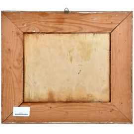 Lago montano, XX secolo, olio su compensato, cm 24x30, firmato i basso a sinistra entro cornice
