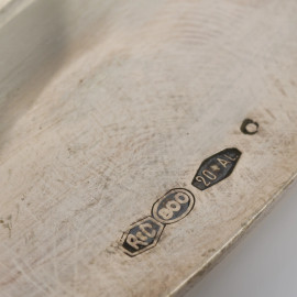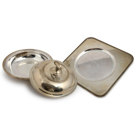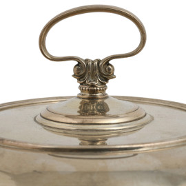 Legumiera con vassoio in argento 800/000, misura massima cm 13x28x28, peso complessivo gr 1400