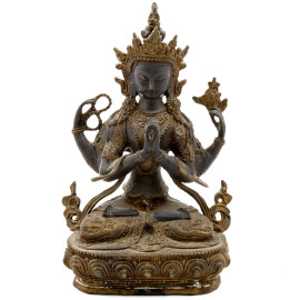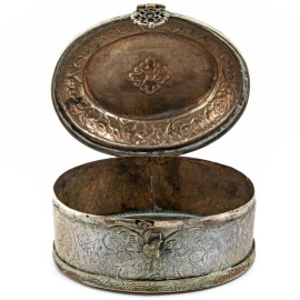 Lotto composto da scultura in bronzo della dea Calì e una scatola in metallo argentato, altezza massima cm 18,5 (usura del tempo)