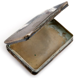 Lotto composto da un porta sigari in argento inglese e una piccola tabacchiera con cane smaltato in argento, misure massime cm 12x6, peso dell'argento gr 160