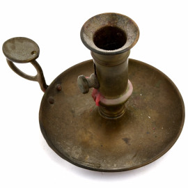 Lotto composto da una bugia e due portacandele in bronzo, XX secolo, altezza massima cm 20, (segni di usura del tempo)