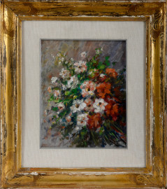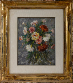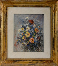 Lotto di 3 dipinti raffiguranti fiori, XX secolo, olio su tela, cm 30x24, entro cornice