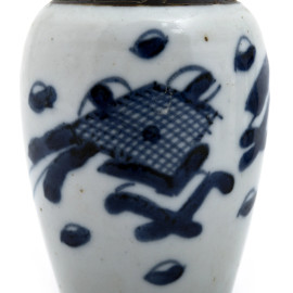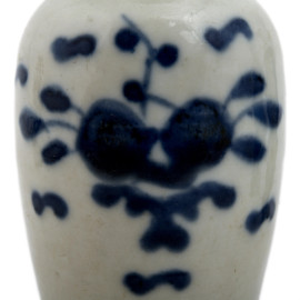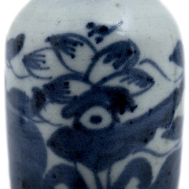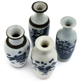 Lotto di 4 vasi portafiori in porcellana bianca con decori nei toni del blu, Cina, XX secolo, altezza massi cm 15, (segni di usura del tempo, difetti di cottura)