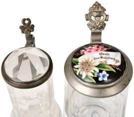 Lotto di due boccali in vetro, XX secolo, altezza massima cm 18, (segni di usura)