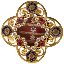 Lotto di due ex voto in metallo dorato e pietre dure, XX secolo, misure massime cm 7x7, (segni di usura del tempo)