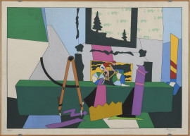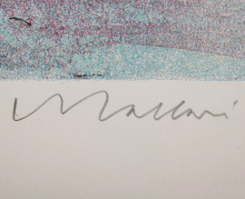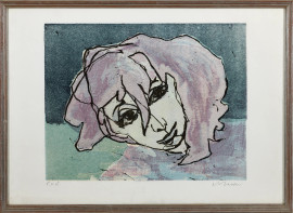 Ugo Nespolo, Ciclismo, litografia a colori esemplare 31/100, cm 50x70 entro cornice (ondulature); Mino Maccari, Volto di donna, litografia a colori esemplare P.d.st., cm 50x70 entro cornice (lievi ondulazioni)