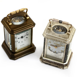 Lotto di due piccoli orologi cappuccina La Vallèe, rispettivamente in bronzo e bronzo placcato in argento 925, misure massime cm 8x4x5, (da revisionare)