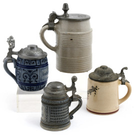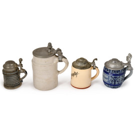 Lotto di quattro boccali in ceramica di varia foggia, XX secolo, altezza massima cm 14,5, (segni di usura)