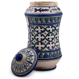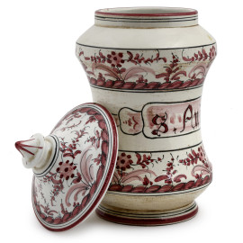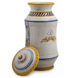 Lotto di quattro vasi da farmacia di varie fogge e manifatture, XX secolo, altezza massima cm 30, (cadute di smalto, scalfiture)