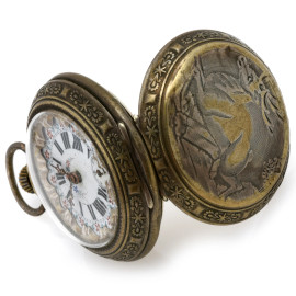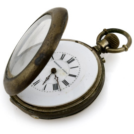 Lotto di sette orologi da tasca in metallo argentato, diametro massimo cm 5 (da revisionare, segni di usura del tempo)