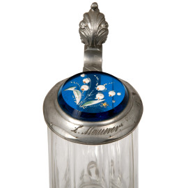 Lotto di tre boccali in vetro e cristallo con inserti in metallo, XX secolo, altezza massima cm 21, (segni di usura)