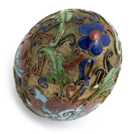 Lotto di tre uova in materiali diversi e un poggiacarte con sfera in marmo, XX secolo, misure massime cm 16