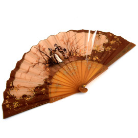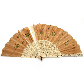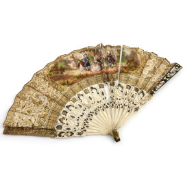 Lotto di tre ventagli in carta dipinta e una borsetta in tessuto e metallo, XIX-XX (rotture e difetti)