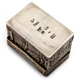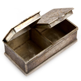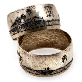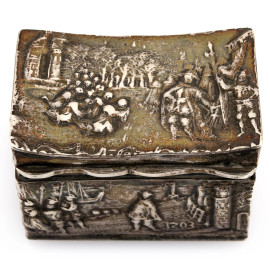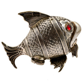 Lotto in argento 800/000 composto da una fiaschetta, tre portatovaglioli, due scatoline e un pesce, misure massime cm 9x8, peso gr 240