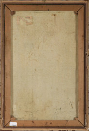 Mario Nanni, Vecchia contadina, olio su tela, cm 100x65 entro cornice, firmato al retro, (cadute di colore)
