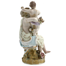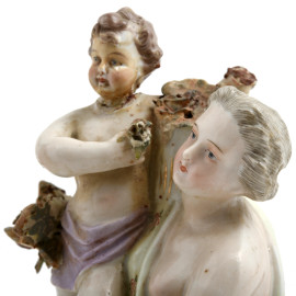 Maternità, scultura in porcellana policroma, XIX secolo, altezza cm 22(cadute di smalto stannifero, felature, restauri, mancanze)