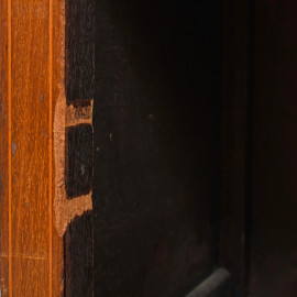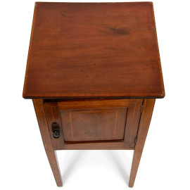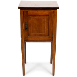 Mobiletto in varie essenze con filettatura in bosso ad uno sportello, XX secolo, cm 72x39,5x39,5, (usura del tempo, graffi al piano)