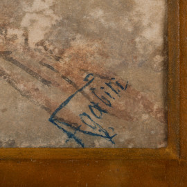 Nel cortile, XIX - XX secolo, acquerello su carta, firmato in basso a destra, cm 49x39 compreso passepartout entro cornice, (ondulazioni della carta)