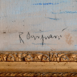 Notturno con barche, XX secolo, pastello su compensato, cm 50x65 , firmato in basso a sinistra, entro cornice, (difetti)
