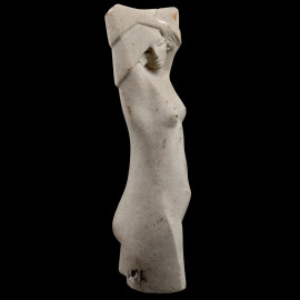 Nudo di donna, scultura in gres, cm 23, firmato al retro, (macchie, scalfiture, difetti)