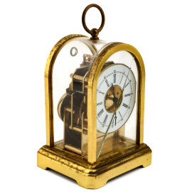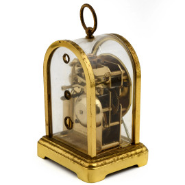 Orologio cappuccina Du Chateau ad assetto centinato in bronzo con quadrante circolare a numeri romani, cm 12,5x8,5x7,5, (vetro frontale trasversalmente tagliato, da revisionare)