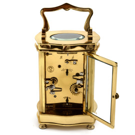 Orologio cappuccina in bronzo con quadrante a smalto con numeri romani, cm 17x7x5,5, (da revisionare)