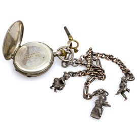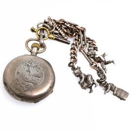 Orologio da tasca in argento con catena Aubert- Geneve , Cylindre 10 Rubis, cm 3, peso lordo gr 50 (da revisionare)