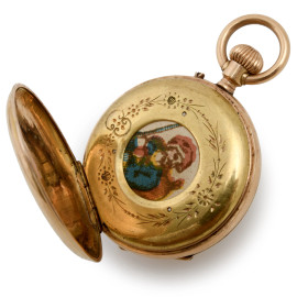 Orologio da tasca in oro 18 kt, cm 3, peso lordo gr 25, (da revisionare)