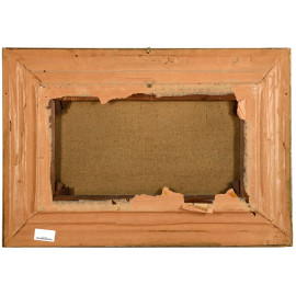 Paesaggio fluviale, olio su tela, cm 36x62, firmato e datato 1920 in basso a destra, entro cornice, (cadute di colore)