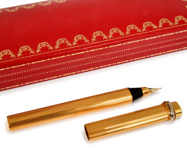 Penna stilografica Must de Cartier placcata in oro, cm 13,5 (pennino sostituito, da revisionare)
