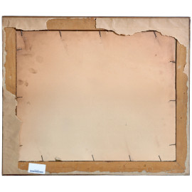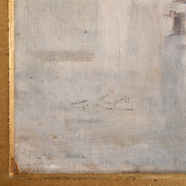 Piazza con macchine e figure, XX secolo, olio su tela applicata su cartone, cm 44x54, firmato in basso a sinistra, entro cornice, (ondulazioni della tela)