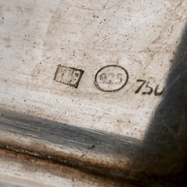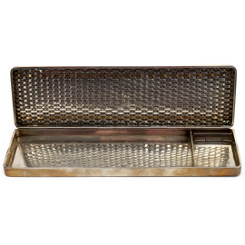 Portasigari in argento con coperchio lavorato a maglie, cm 2x26x7,5, peso gr 330